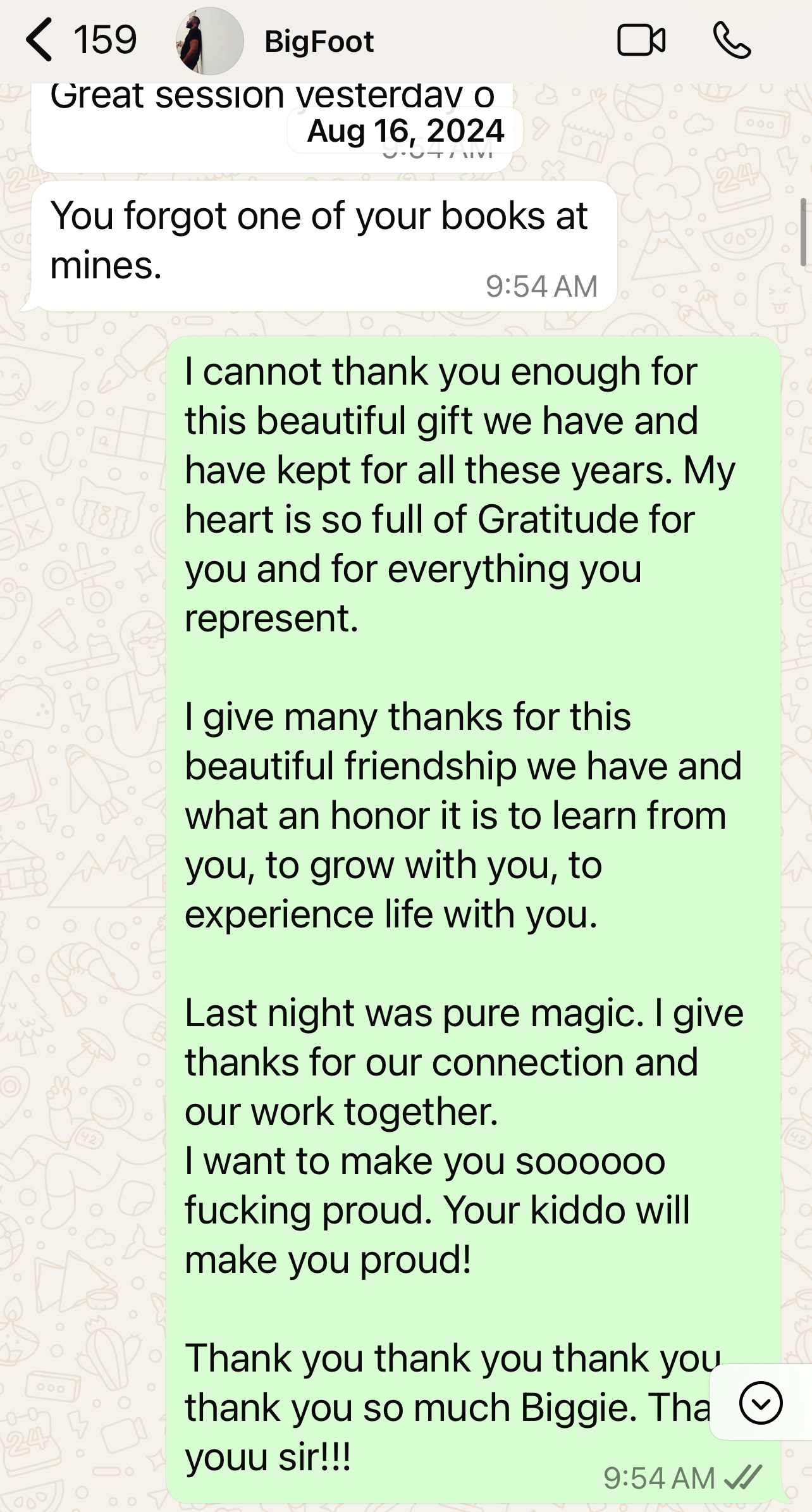 So monumentally special in fact, that I sent Bigfoot this message after the session ā